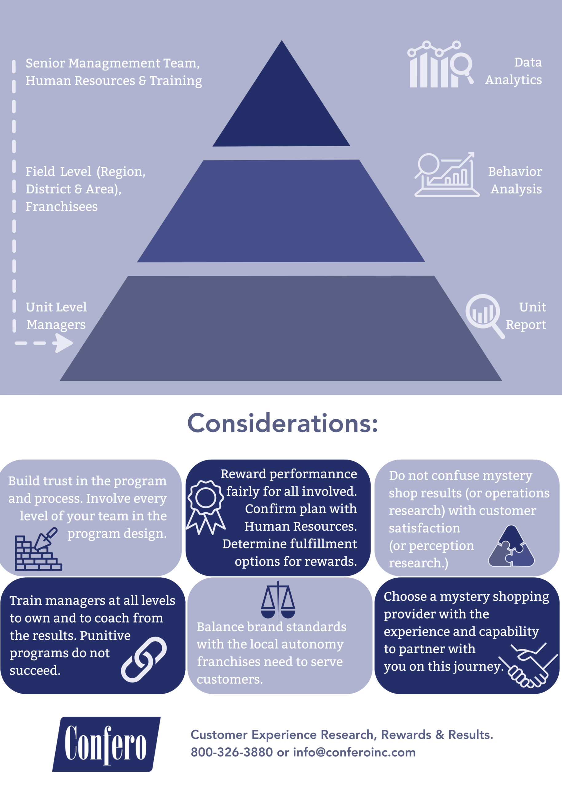 DescriptionConfero shares an infographic for Food & Beverage Mystery Shopping Program. Customer experience research is invaluable to building business.