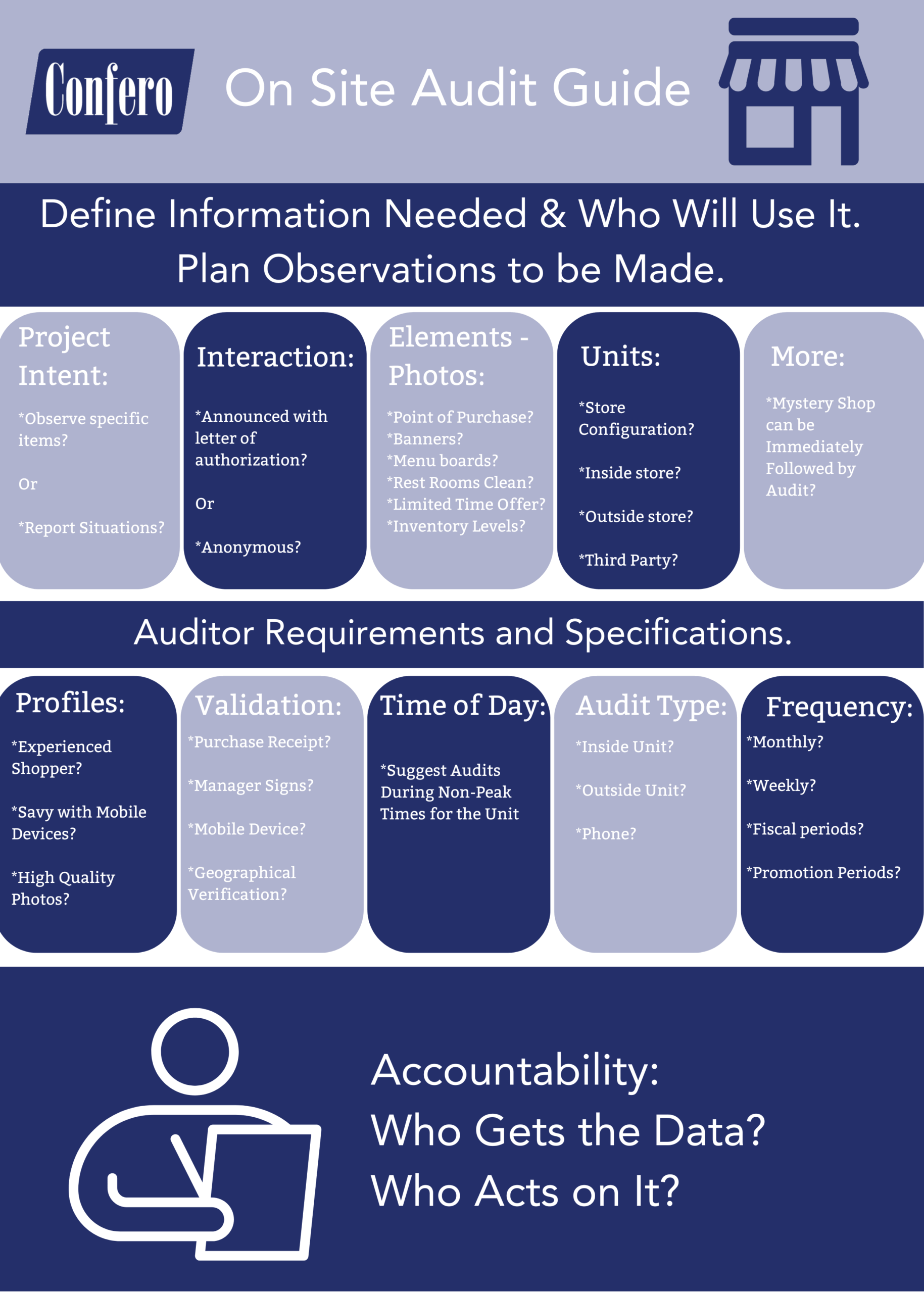 Confero can provide onsite field audits for compliance, brand, customer service and much more across the United States. Learn more.