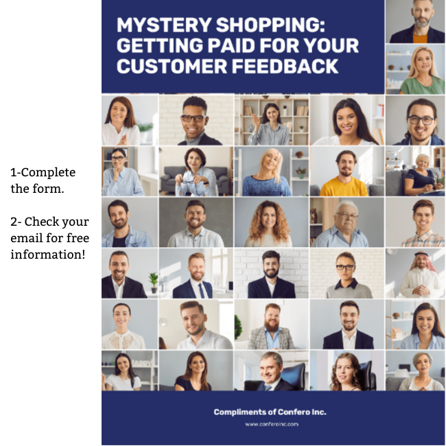 When you complete this form, we’ll email you a helpful booklet that explains how mystery shopping works. That email will also include a link to register as a Confero mystery shopper.