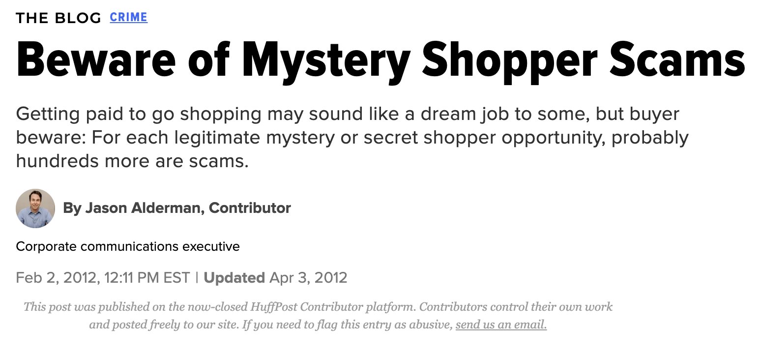 Huff Post Beware Mystery Shopper Scams